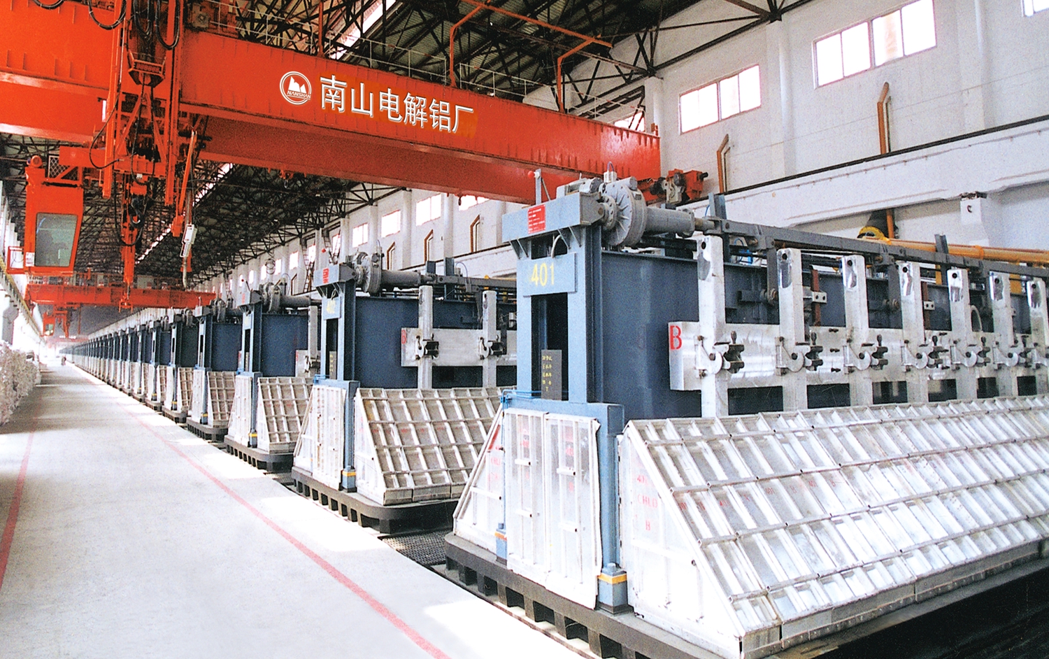 南山電解鋁是南山鋁業的支柱產業,始建于1997年,1999年正式投產。經過二十余年的發展,電解鋁公司已發展成為擁有員工4000余人的大型企業,分為南山、東海兩個廠區,現有4個電解鋁廠,擁有160KA、300KA、400KA電解槽共計910臺。