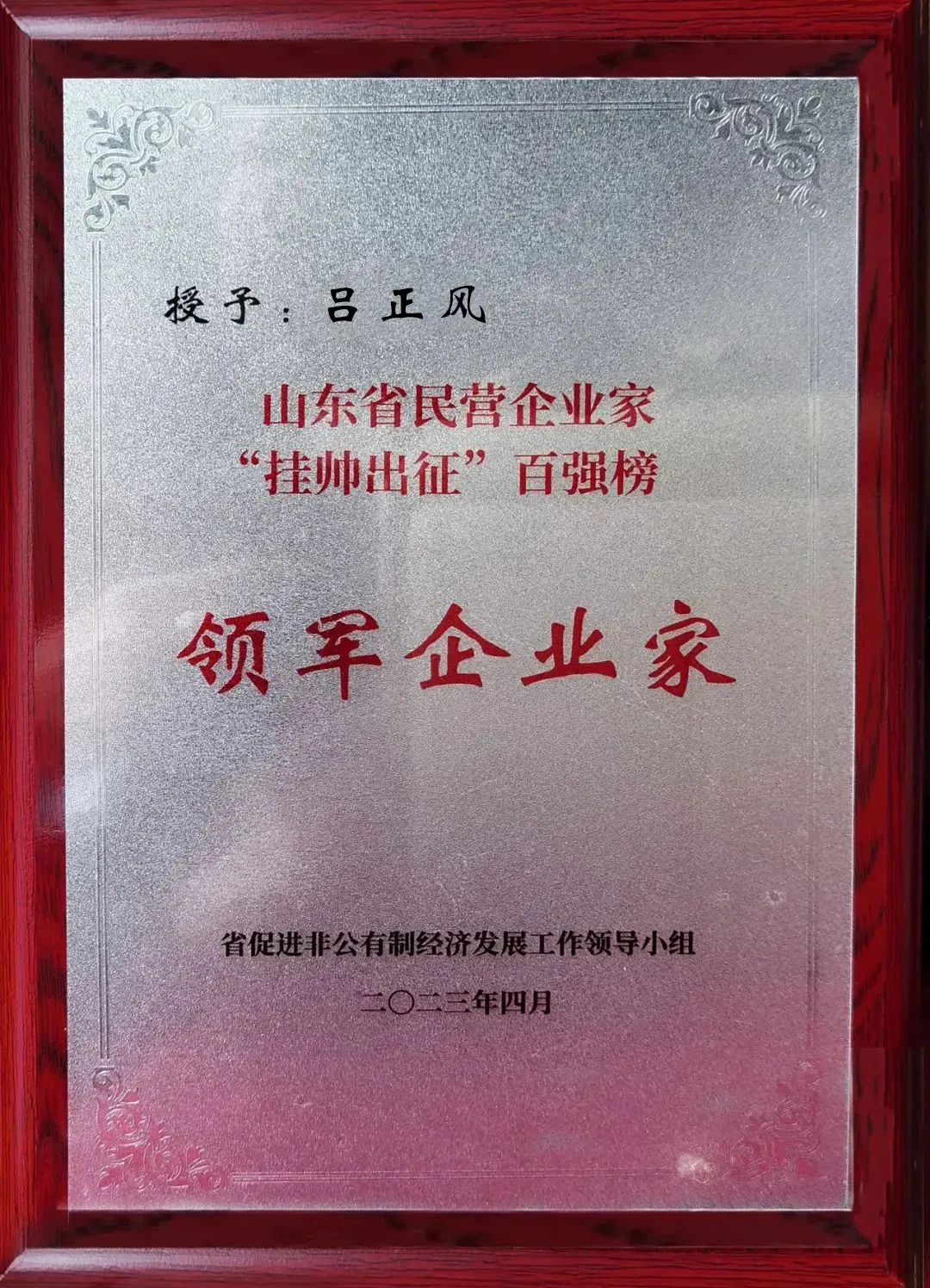 4月20日上午,山東省民營經濟高質量發展工作會議在濟南召開。會上,宣讀了山東省民營經濟高質量發展先進縣(市、區)評價情況通報,發布了山東省民營企業家“掛帥出征”百強榜。與會省領導為獲獎單位和個人授牌。2022年度省民營企業家“掛帥出征”百強榜名單包括30名領軍型企業家、40名菁英型企業家及30名新星型企業家。南山鋁業董事長兼總經理呂正風被授予山東省民營企業家“掛帥出征”領軍型企業家。