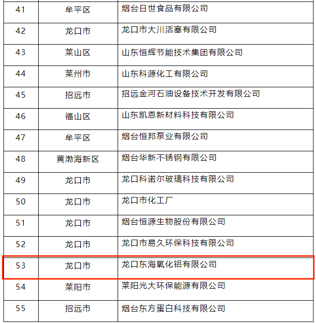 日前,煙臺(tái)市工業(yè)和信息化局公布2023年度煙臺(tái)市綠色工廠名單,龍口東海氧化鋁有限公司榜上有名。