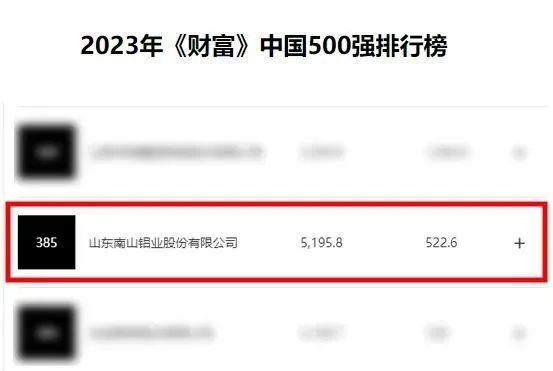 7月25日,2023年《財富》中國500強排行榜揭曉,山東南山鋁業股份有限公司位列榜單385位,較去年上升29位。