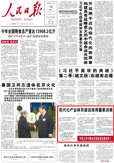 12月13日 《人民日報》產(chǎn)經(jīng)專版頭條