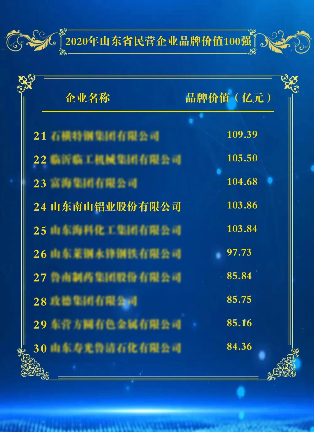 在各項品牌價值排行榜中,南山憑借自身企業品牌價值實力攬獲多項殊榮。其中,南山集團有限公司榮登山東省民營企業品牌價值100強榜單第2名、煙臺市品牌價值評價20強榜單第1名;山東南山鋁業股份有限公司榮登山東省民營企業品牌價值100強榜單第24名、煙臺市品牌價值評價20強榜單第6名;龍口南山鋁壓延新材料有限公司榮登煙臺市品牌價值評價20強榜單第11名。