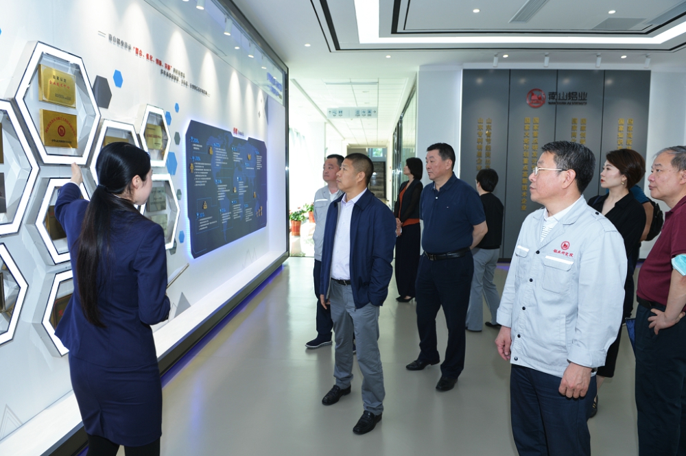 范順科副書記一行先后參觀了南山鋁業(yè)下屬的東海電廠、氧化鋁、電解鋁、擠壓型材、板帶事業(yè)部、鍛造公司、檢測中心、南山鋁業(yè)科技品牌展覽館等地。對南山鋁業(yè)在產(chǎn)業(yè)鏈運作、科技創(chuàng)新、產(chǎn)品應用等方面取得的發(fā)展成果給予了充分肯定。南山鋁業(yè)總經(jīng)理呂正風圍繞生產(chǎn)經(jīng)營、技術裝備、科技創(chuàng)新、節(jié)能環(huán)保等方面做了相關情況匯報,并闡述了當前面臨的形勢和問題,以及公司今后的發(fā)展規(guī)劃。
