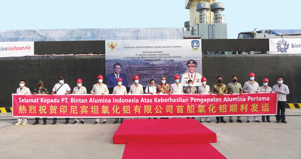 7月2日,印度尼西亞經濟統籌部長艾爾朗加·哈塔托和工業部長阿古斯·古米旺·卡塔薩斯米塔視頻連線,廖內群島省長安薩爾·艾哈邁德親臨現場,共同參加印尼賓坦氧化鋁首船氧化鋁發運儀式。印尼氧化鋁公司領導張國燈、賈振江、郝維松等出席儀式。