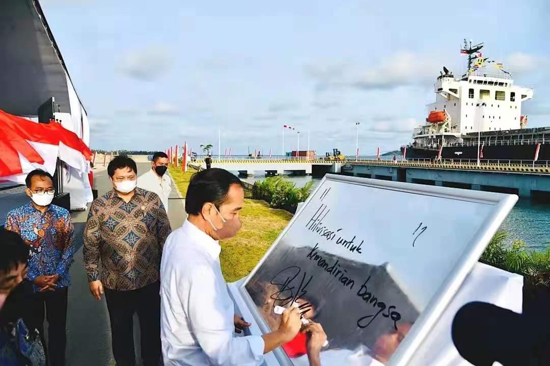 印尼總統佐科在港口發表了重要講話,350年前印尼被其他國家侵略,一直出口原材料,并且延續至今,導致國家利益受損。如果將鋁土礦加工成氧化鋁,其產品附加值將提高16倍,因此,印尼必須改變思路,停止原材料的出口,吸引更多像印尼賓坦氧化鋁有限公司一樣勇敢的企業來印尼投資生產。經過不到5年的發展,園區建設規模及變化速度讓人驚喜,正因為印尼有了這樣優秀的企業,才使得國內工業及下游相關產業鏈得以快速成長,全國的稅收日益增加、就業率持續攀升。