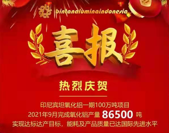 今日,公司收到印尼子公司發來的喜報,截止28日生產數據顯示,印尼氧化鋁一期100萬噸項目2021年9月完成氧化鋁產量86,500噸,實現達標達產目標,且能耗以及產品質量已達國際先進水平。
