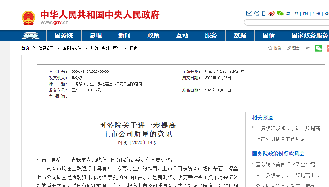 國(guó)務(wù)院關(guān)于進(jìn)一步提高 上市公司質(zhì)量的意見(jiàn)